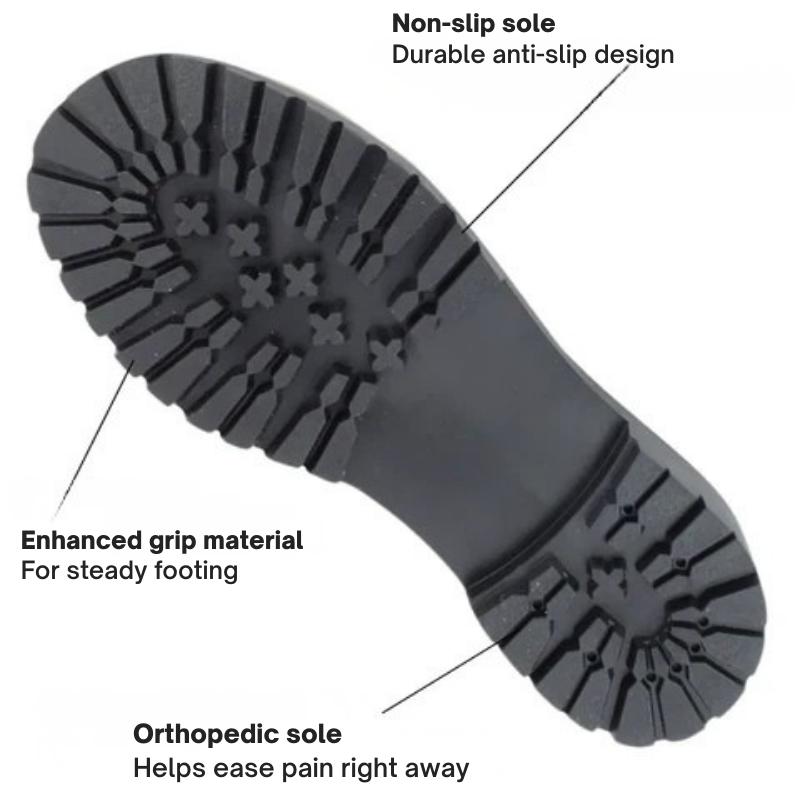 Traditional winter shoes don't protect you from ice and sleet. That's why we've equipped our winter boots with a specially designed orthopedic sole that's super slip-resistant.