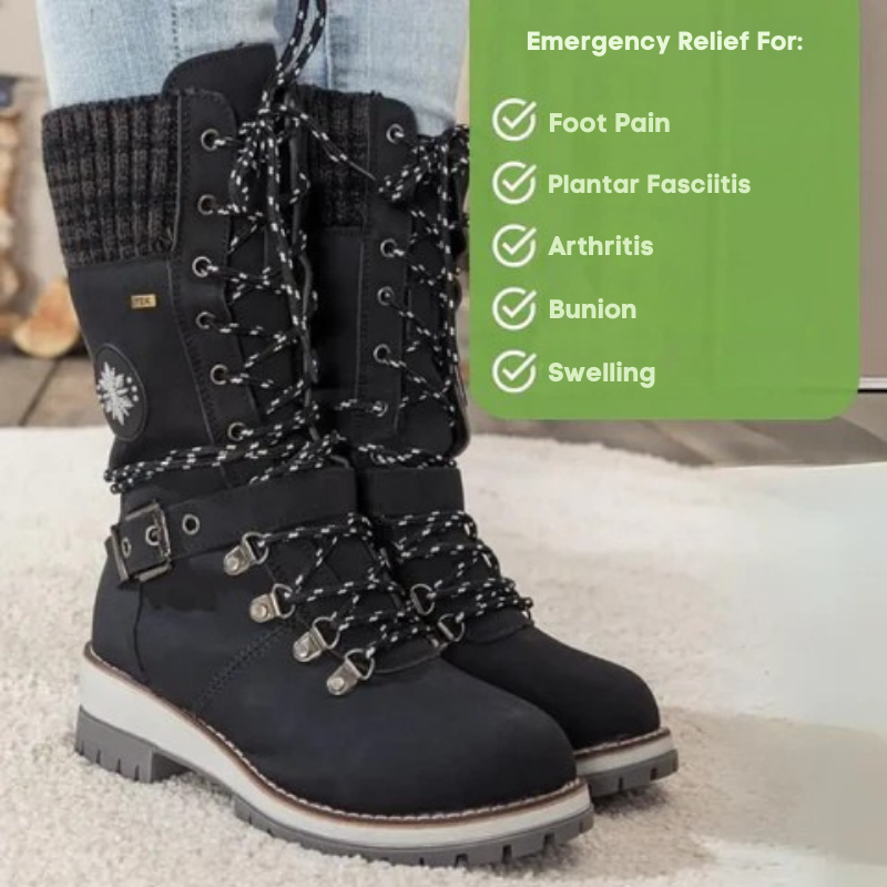 The Orthoboots Orthopedic Winter Boot combines premium waterproof nubuck leather, 200g Thinsulate insulation rated to -60°F, and an ergonomic EVA insole for instant pain relief. Featuring Multi-Directional IceGrip rubber lugs, a wide toe box, and a convenient side zipper — designed for women who refuse to choose between warmth, comfort, and style.